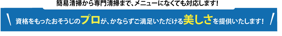 簡易清掃から専門清掃まで、メニューにはない希望箇所をいろいろ組み合わせてご利用いただけます。まずはご相談ください。 |